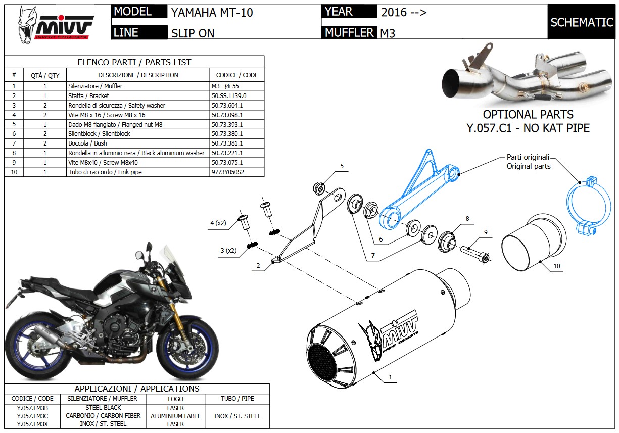Mivv MK3 Carbon Einddemper met E-keur Yamaha MT-10 / FZ-10 2016 > 2022