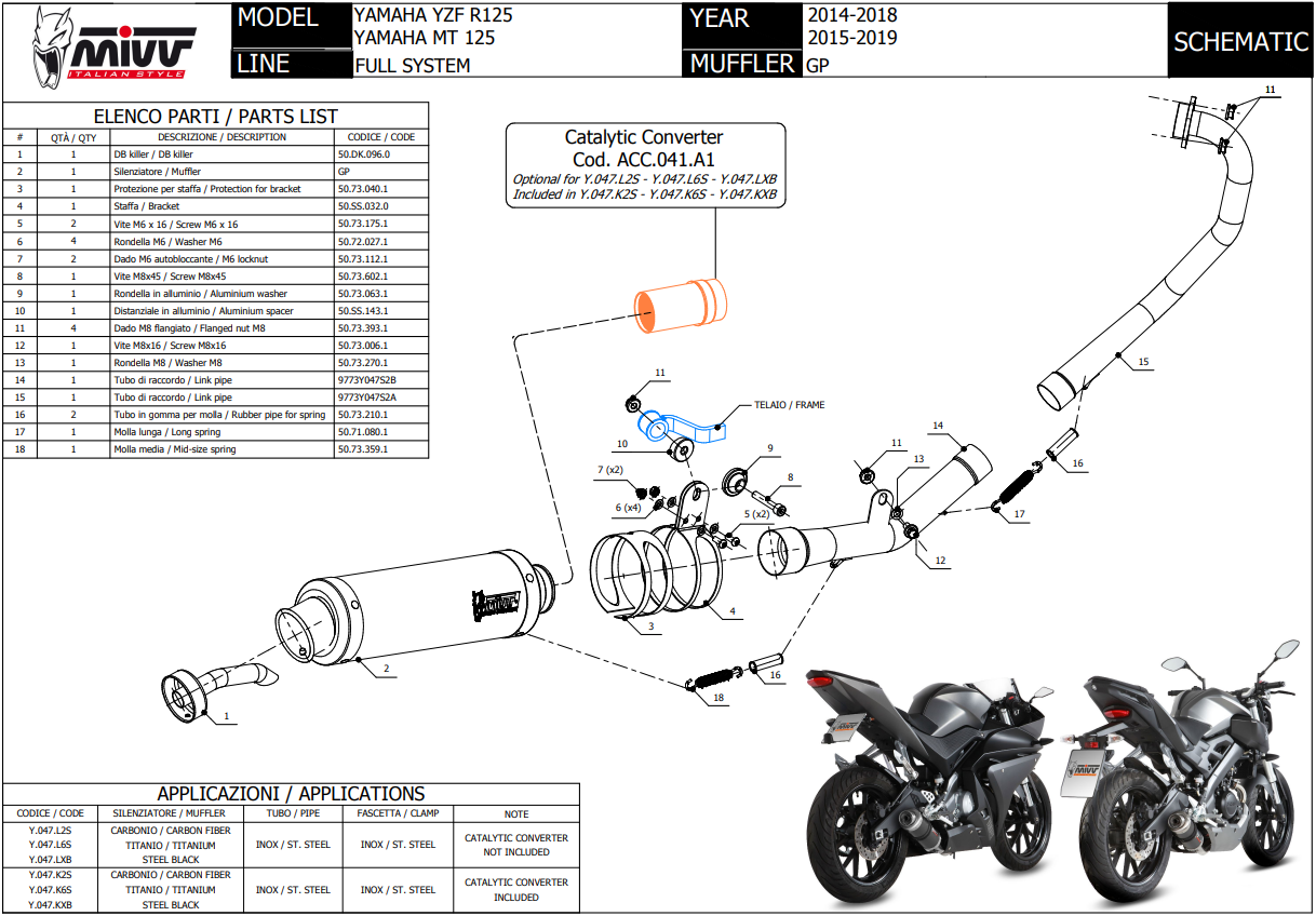 Mivv GP Carbon Compleet Uitlaatsysteem met E-keur Yamaha MT-125 2015 > 2019