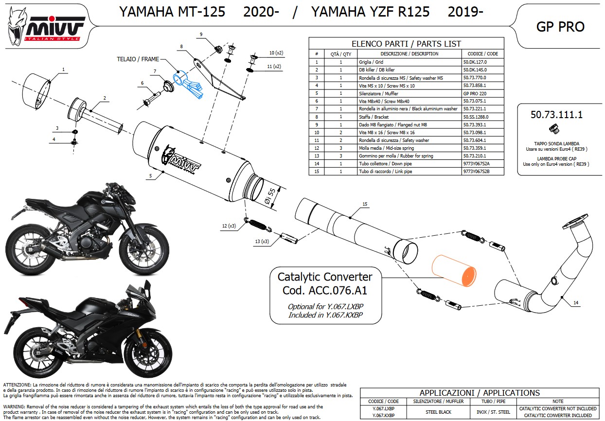 Mivv GP Pro RVS Black Compleet Uitlaatsysteem met E-keur Yamaha MT-125 2020 > 2024