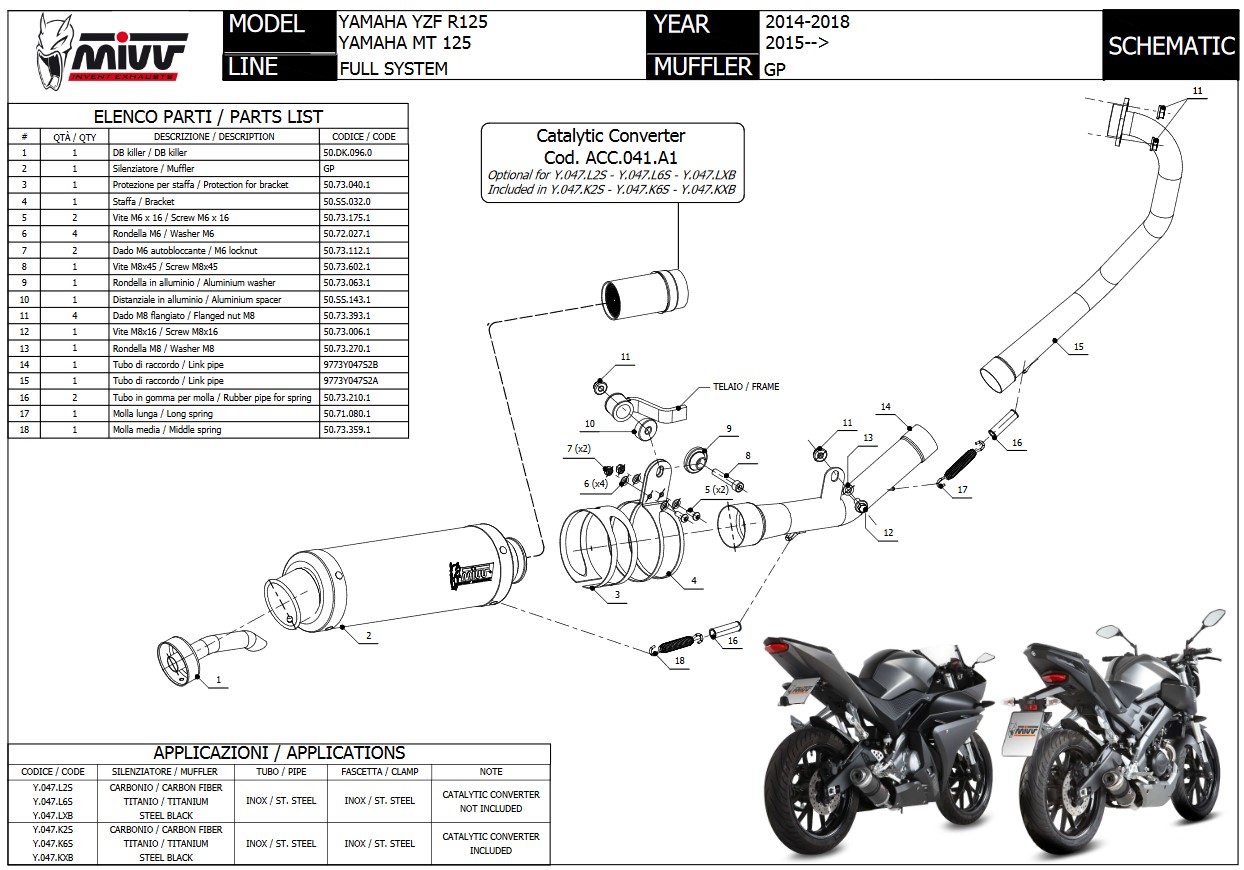Mivv GP RVS Black Compleet Uitlaatsysteem met E-keur Yamaha MT-125 2015 > 2019