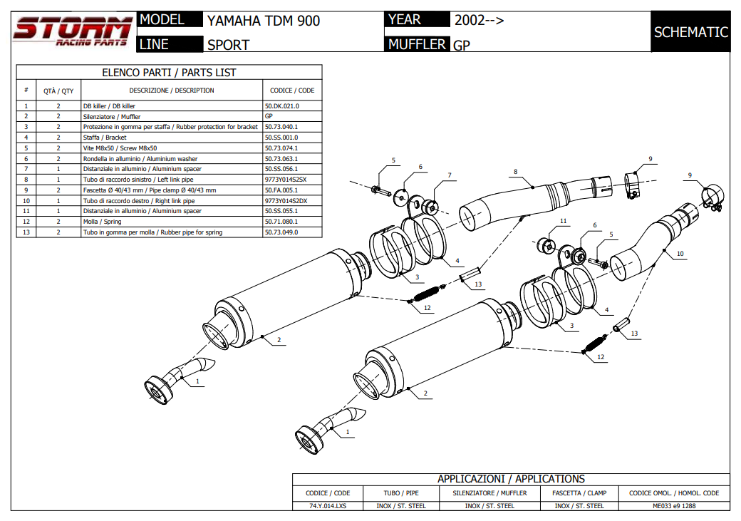 Storm By Mivv GP RVS Dubbele Slip-on Einddemper Met E-keur YAMAHA TDM 900 2002 - 2014
