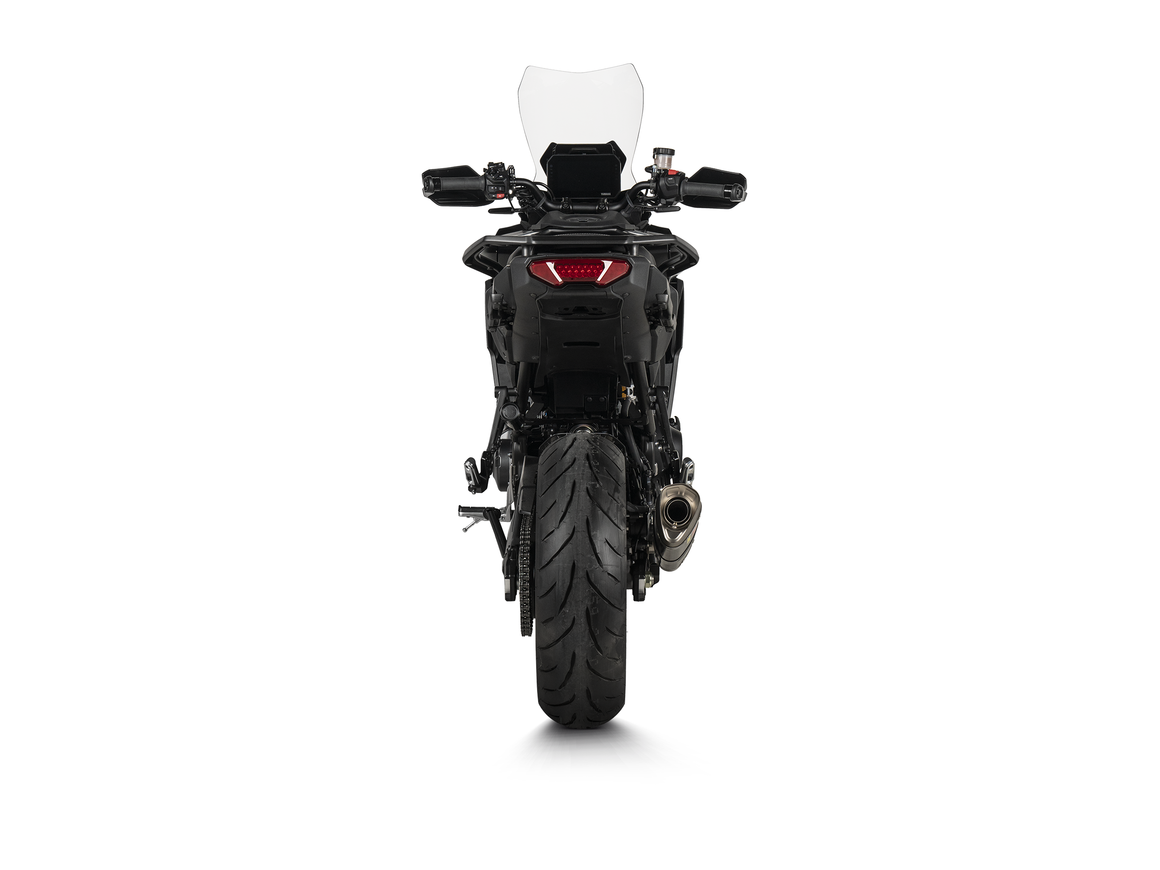 The new design features a shorter muffler for an enhanced sporty look, which exits on the side of the bike for visual impact. Power is increased by 3.3 kW (4.5 hp) at 9,600 rpm when compared in back-to-back tests on a Tracer 9 with a Racing Line (Carbon) exhaust and a standard stock exhaust system.