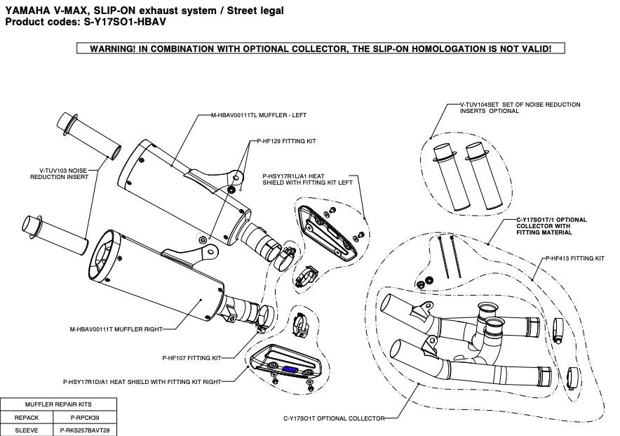 Akrapovic Titanium Voorbochten Yamaha V-Max 2009 - 2016