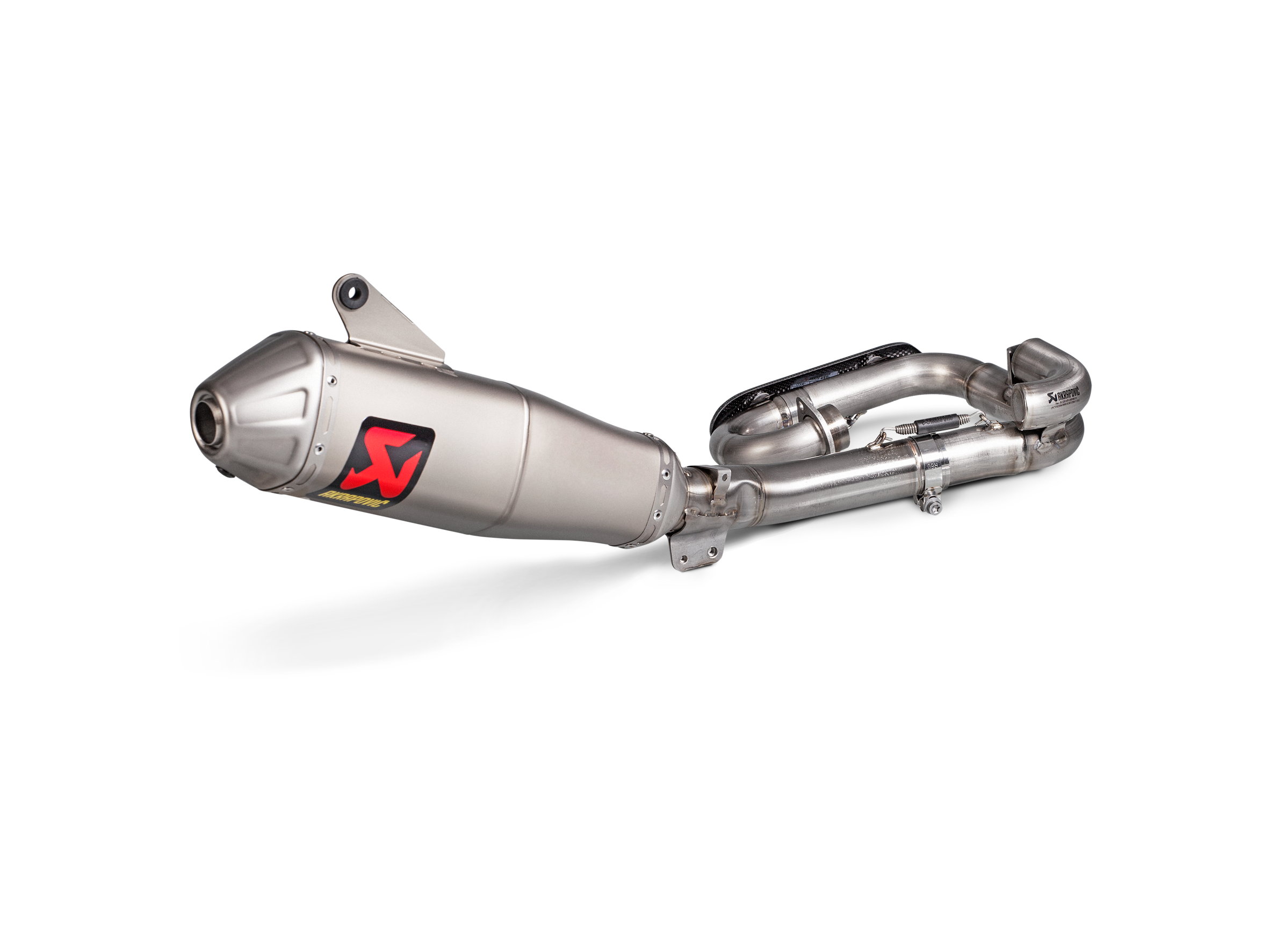 The flagship of the AkrapoviÁ exhaust system range, used and tested by our top factory teams in motorcycle racing. It’s simply the finest exhaust system available. Each model is unique and dedicated to maximizing the engine’s performance, while reducing overall weight for optimized overall handling of the motorcycle. It is made entirely of titanium. Exhaust systems meet FIM noise limits, feature a more durable welded bracket and titanium end cap.