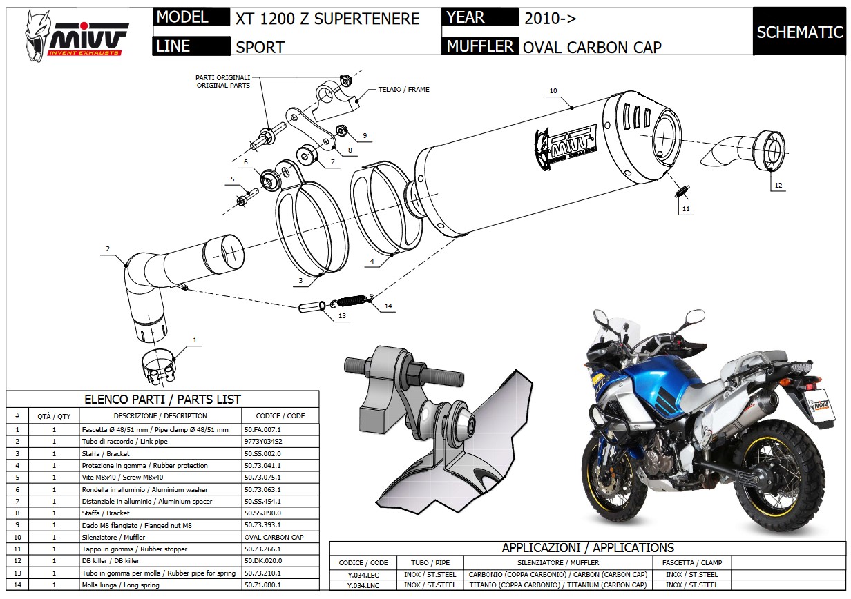 Mivv Oval Titanium met Carbon Endcap Slip-on Einddemper met E-keur Yamaha XT 1200 Z Supertenere 2010 > 2020