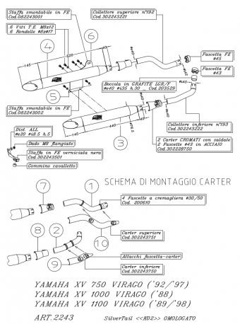 Silvertail K02 Chrome Dubbele Slip-on Einddemper met E-keur Yamaha XV VIRAGO 750 1992 > 2000