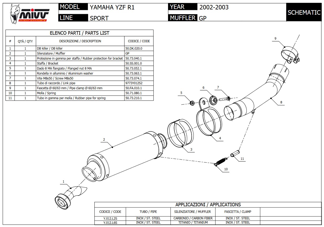 Mivv GP RVS Black Slip-on Einddemper met E-keur Yamaha YZF 1000 R1 2002 > 2003