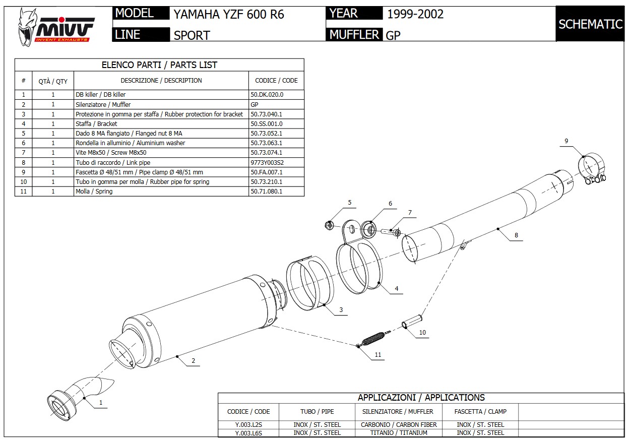 Mivv GP RVS Black Slip-on Einddemper met E-keur Yamaha YZF 600 R6 1999 > 2002